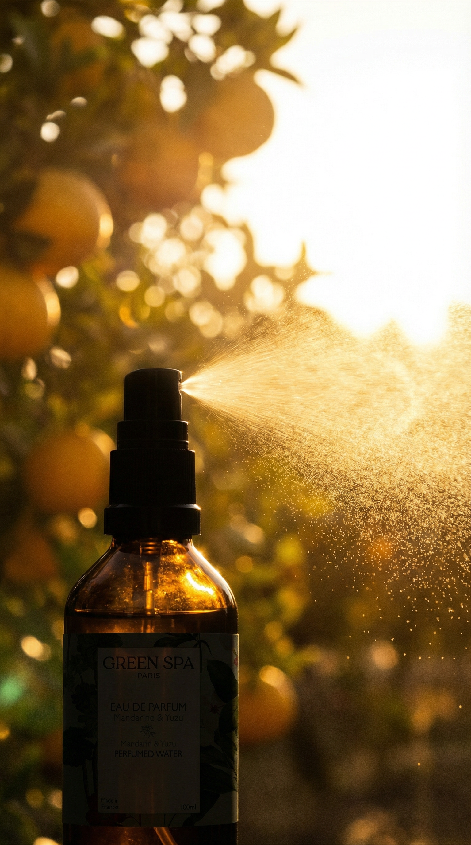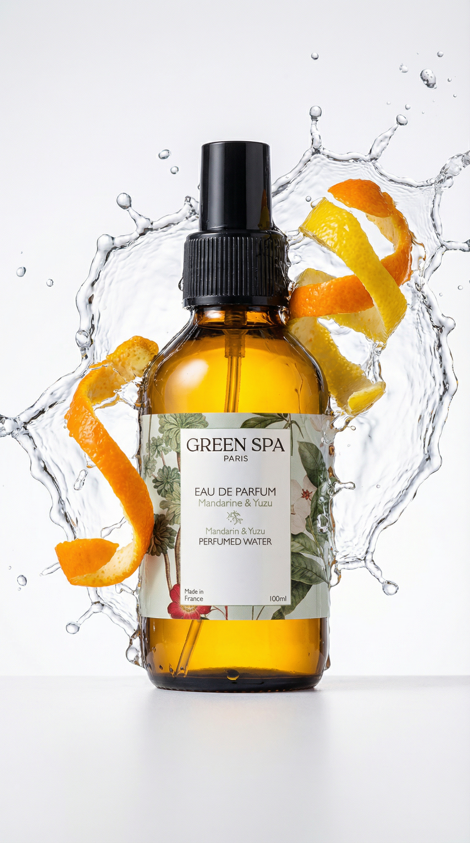 Green Spa vous offre les senteurs naturelles incontournables dans un flacon, avec l’Eau de Parfum Mandarine & Yuzu. Composée d’ingrédients naturels, cette Eau de Parfum est l’occasion de créer un univers olfactif unique, dans lequel vos clientes pourront évoluer.