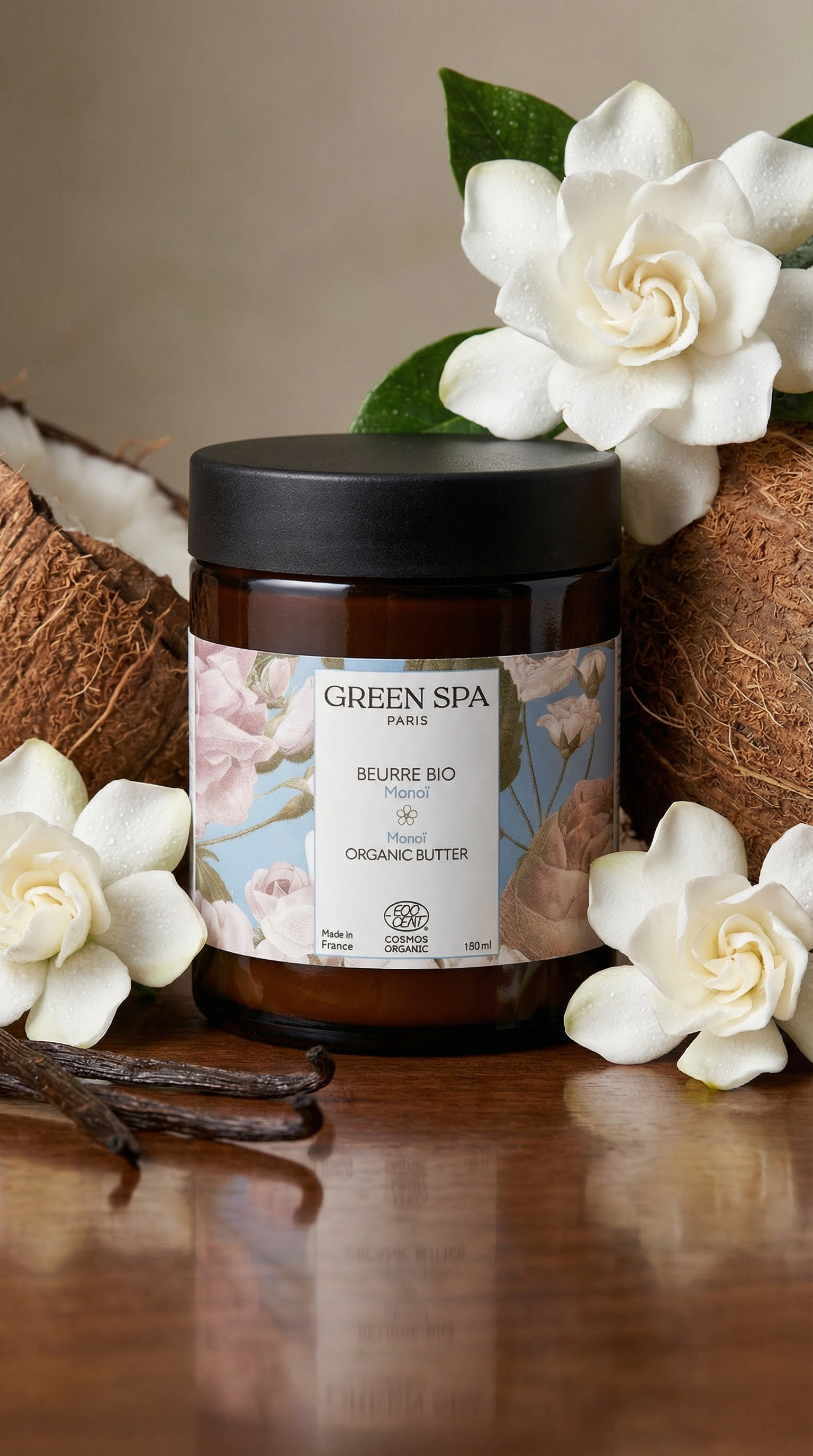 Vous avez envie d’une touche estivale ? Le soleil vous manque, la chaleur aussi ? Green Spa vous offre l’été dans un soin avec le beurre Monoï.