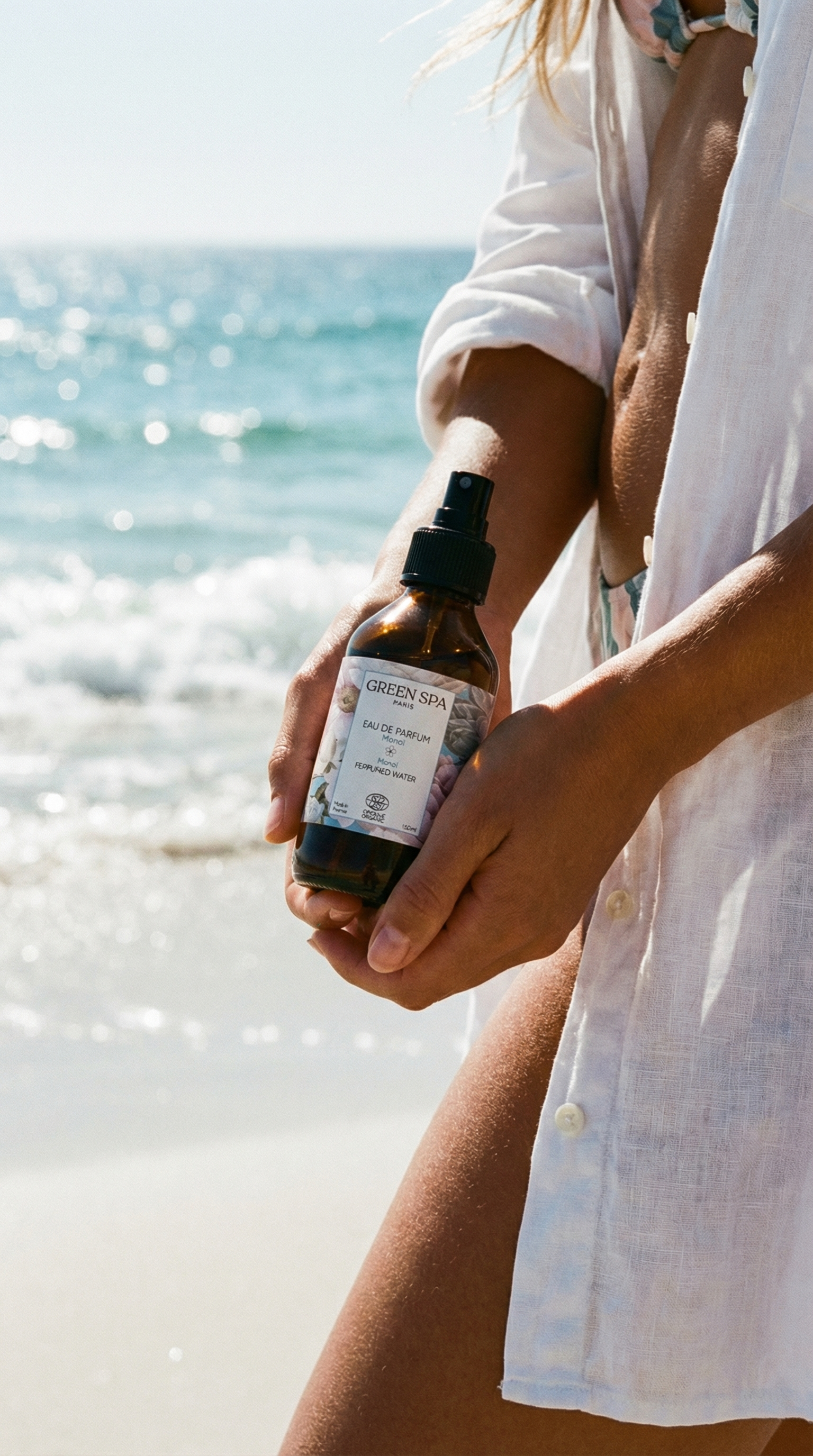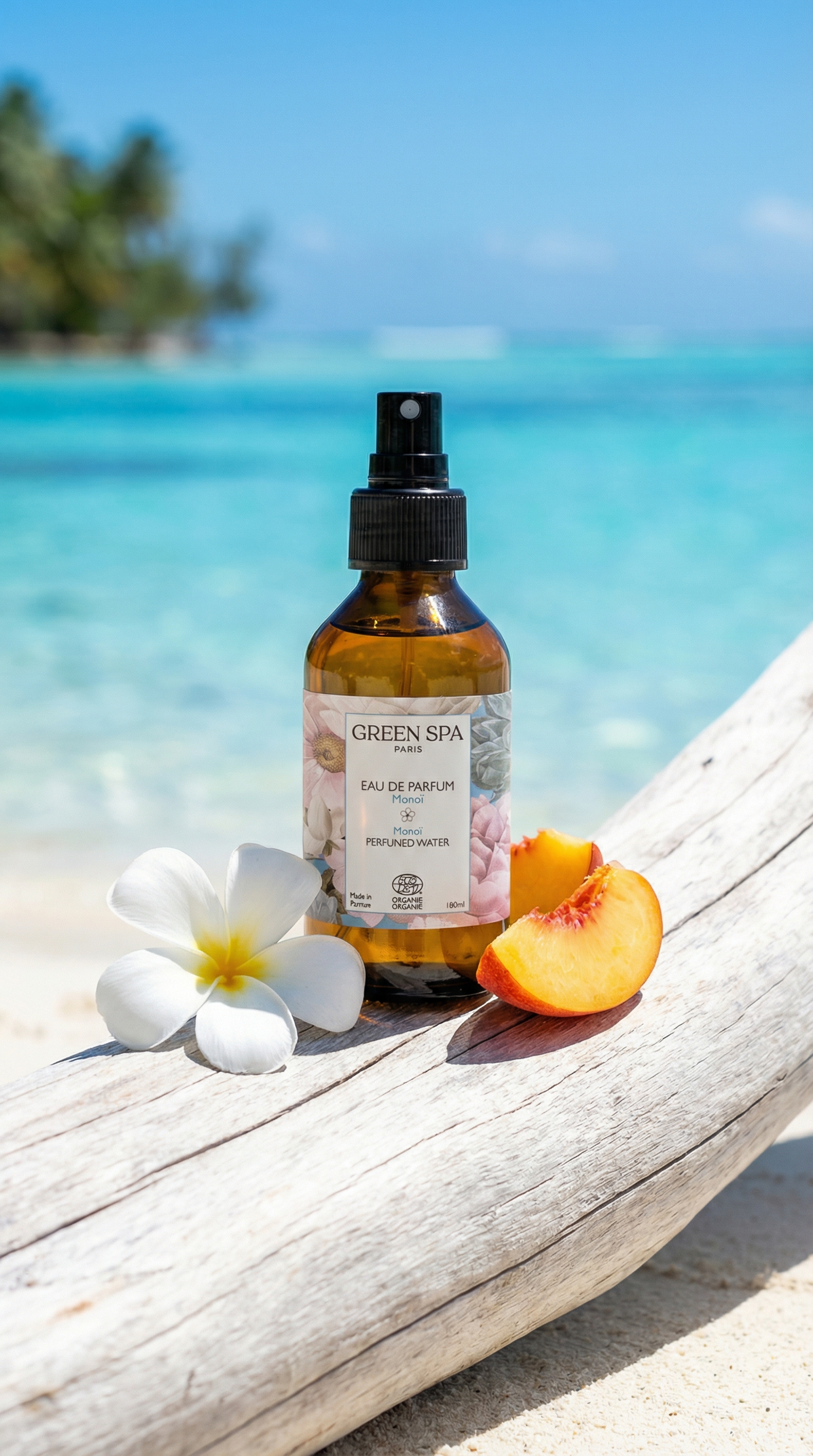 Avec l’Eau de Parfum Monoï, rien de plus simple que d’emmener vos clients et clientes en voyage lors de leurs soins !