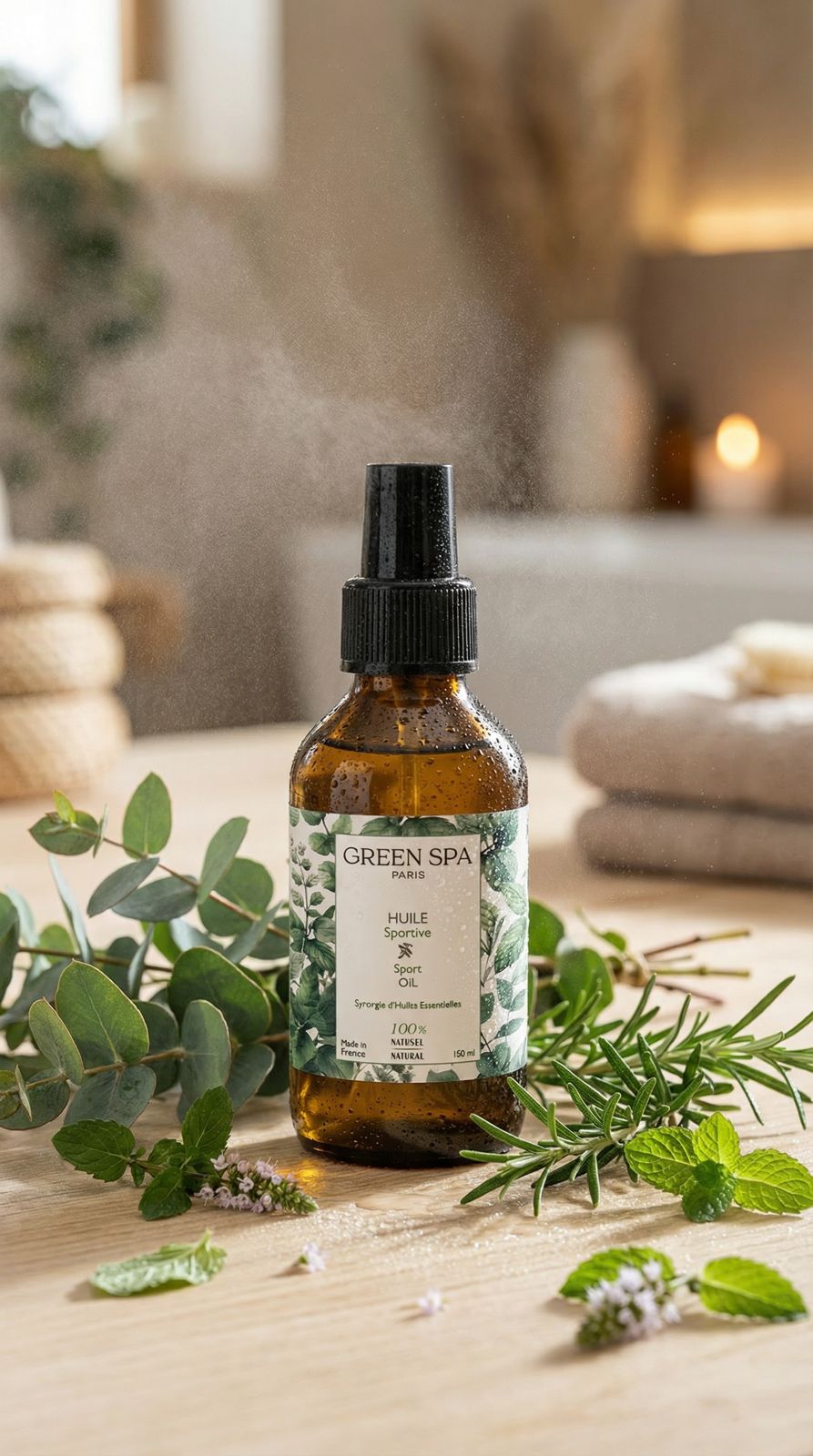 L'Huile Sportive est une huile conçue pour aider à diminuer courbatures et contractures, formulée avec une synergie d'huiles essentielles reconnues pour leurs bienfaits en matière de décontraction musculaire. Sa composition associe l'huile essentielle de menthol, de romarin, d'eucalyptus, et de gaulthérie, sélectionnées pour leurs vertus apaisantes et rafraîchissantes. Chaque ingrédient a été soigneusement choisi pour offrir un soin efficace à votre clientèle en recherche de détente après l'effort.