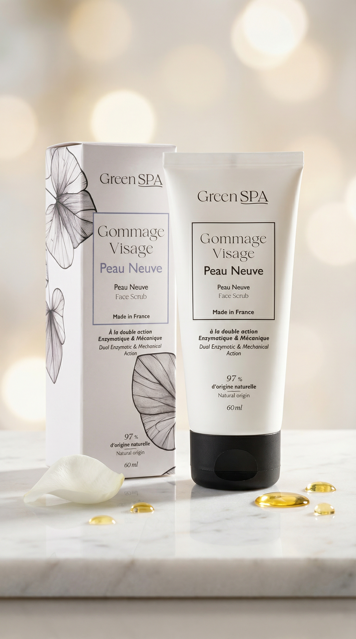 Découvrez le gommage "Peau Neuve", un soin exfoliant adapté à tous les types de peau. Ce gommage innovant élimine les cellules mortes en douceur, favorisant ainsi une meilleure régénération des cellules de l'épiderme pour une peau éclatante et renouvelée.