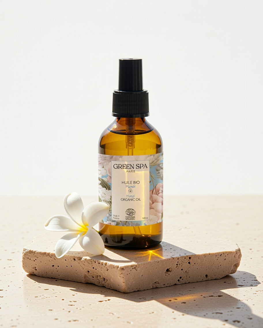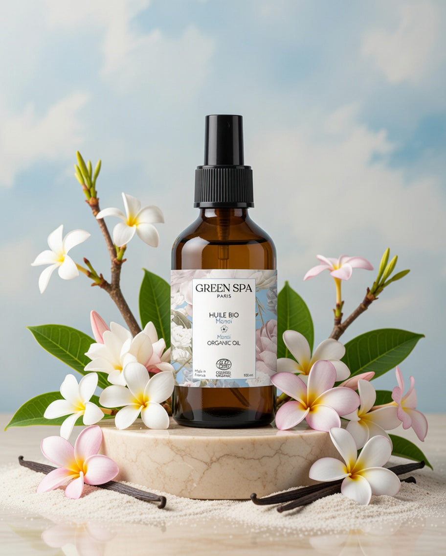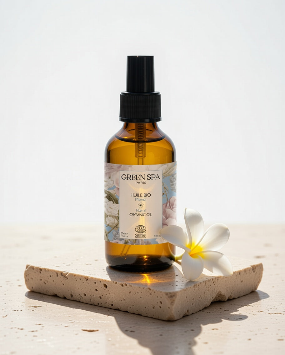 Drapez-vous d’un peu de soleil avec la sublime huile Monoï de Green Spa ! Naturelle et biologique, cette belle huile de massage vous offre tout ce dont votre peau a besoin.