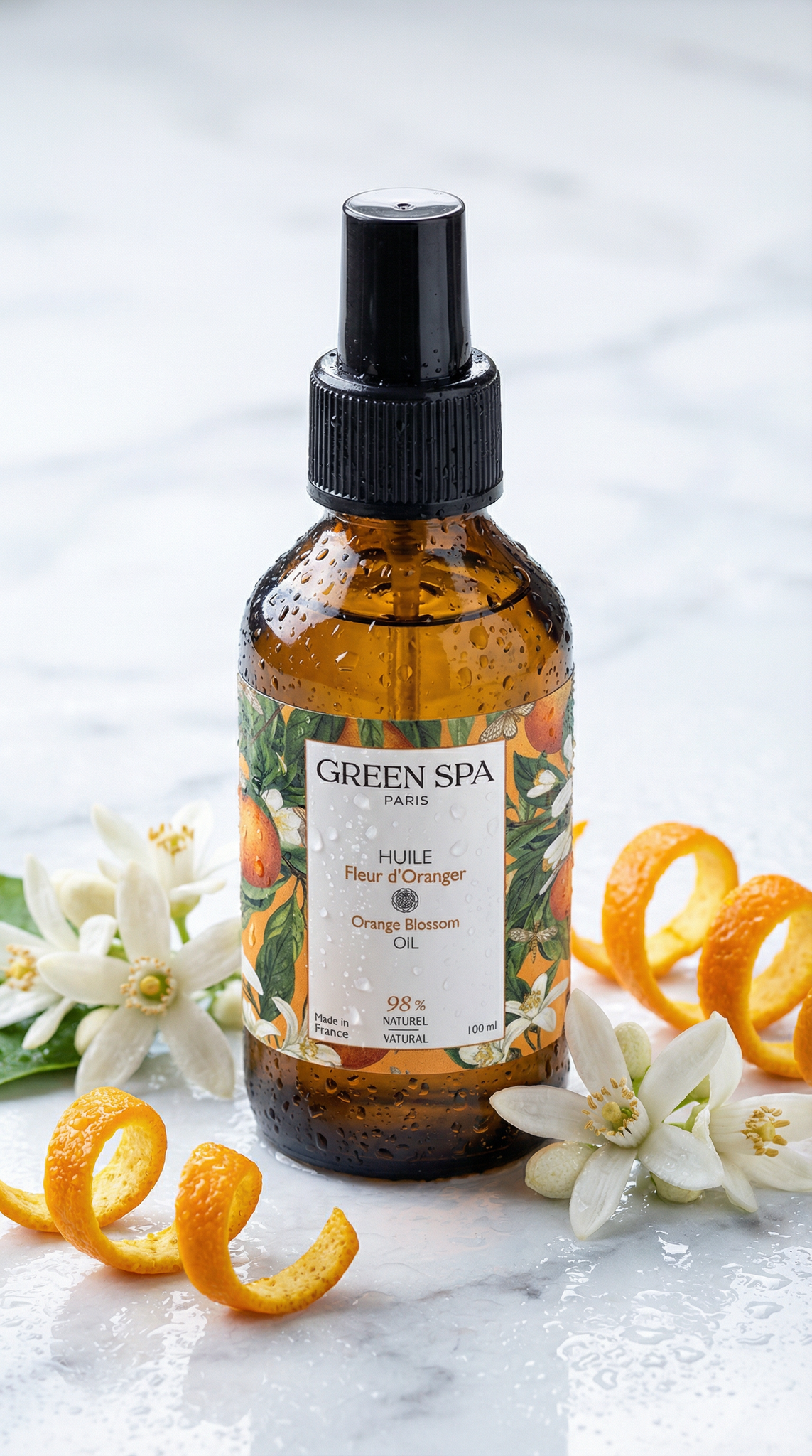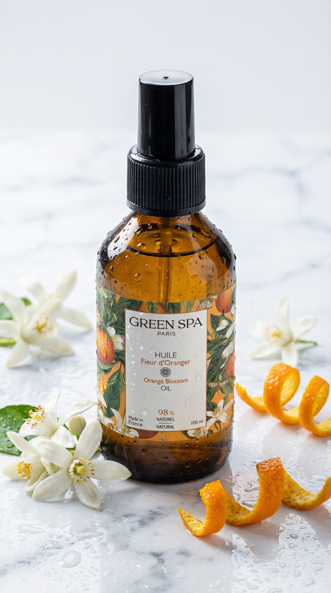 Un voyage sensoriel unique : Utilisée depuis des siècles dans les rituels méditerranéens, la fleur d’oranger est synonyme de bien-être et de raffinement. Green Spa magnifie cet héritage à travers une huile soyeuse qui glisse parfaitement sous les mains, transformant chaque jour en véritable parenthèse d’évasion estivale.